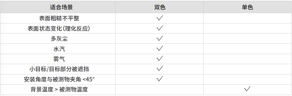 水汽等影響因素不敏感,在復雜苛刻的工業場景下依然可以獲得較高的測溫準確度。不同場景的選型推薦如下: