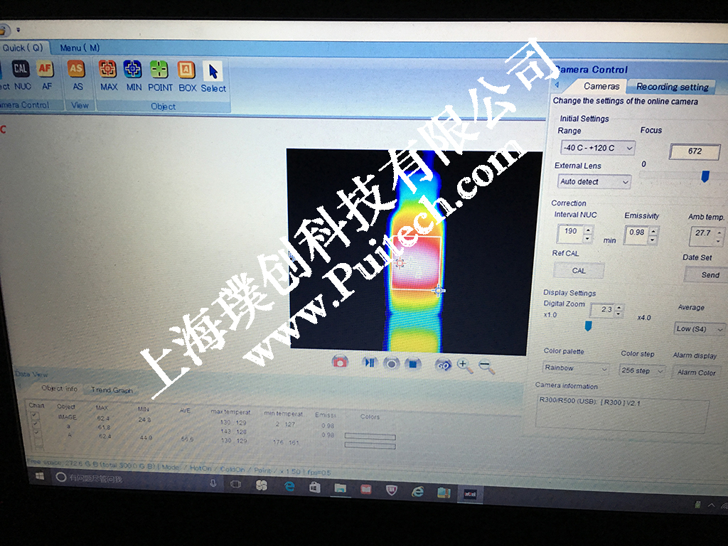 同濟生物工程用NEC紅外熱像儀對試劑熱分布檢測
